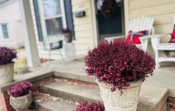 We sat on her front porch in two Adirondack chairs, and I commented on how cute the pillows were. She shared how she had made them out of something, had repainted the chairs, and had even spray-painted her mums to make them pretty after they were dead. She’s crafty, has an eye for design, and brings meaning into every part of her home. And I love it.